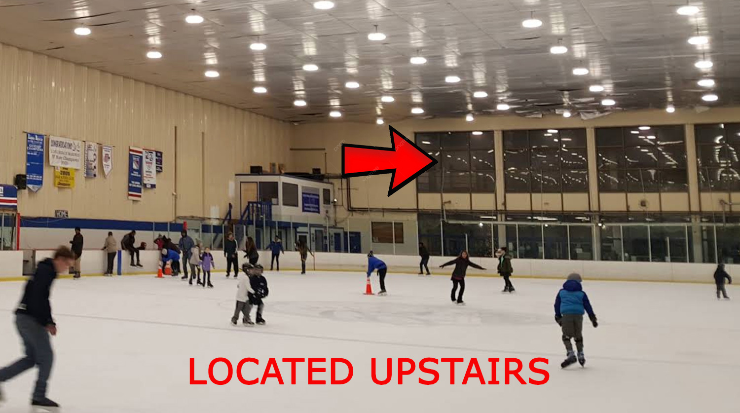 When you ENTER the ice area, make your FIRST right turn immediately up the stair well to the second floor !